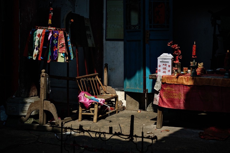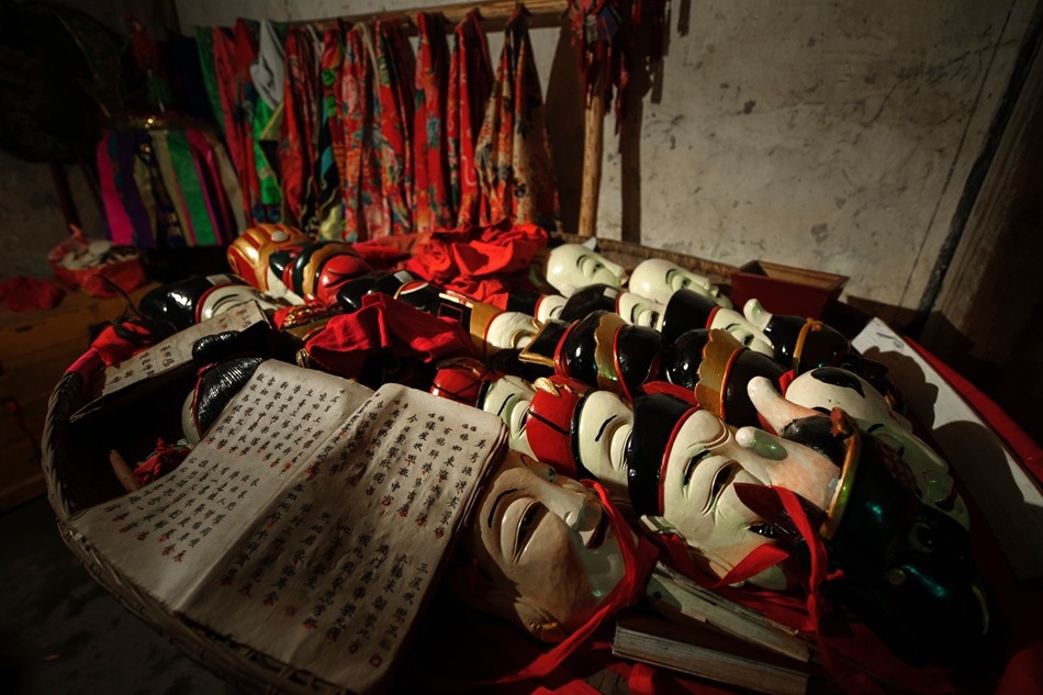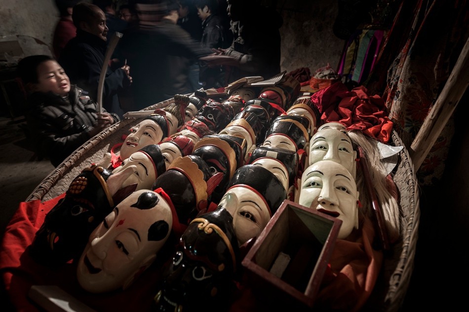 下午我们换一个特定的场景进行创作,摄影是需要在特定的场景拍摄特定的题材,这才是最完美的画面。经过一番程式复杂的傩祭祀仪后,乡民们认为这些脸子已附着灵性,具有神格,所有的天上之神、人间之神、艺术之神等已统统降附于这些脸子上,故它们对其面具虽是现代民间艺人所作,但仍保持了明清时期简朴、庄重、堂皇的艺术风貌,颇具观赏研究价值,形成的一种特殊的表演风俗。从摄影创作角度来说,可拍性非常强,无论是特写,大场景,还是局部都可以进行创作。