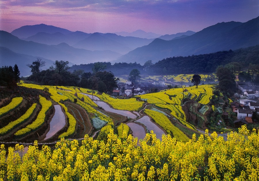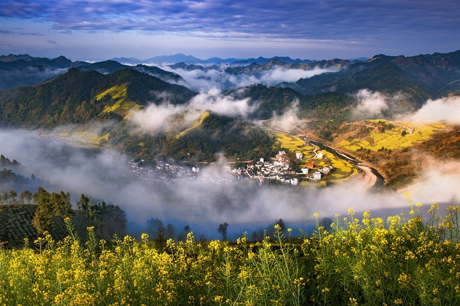 阳春三月,安徽皖南、江西婺源,悄然已是春风拂面,水墨徽州,粉墙黛瓦,桃花点点红,油菜花金灿灿,春到皖南美如画,处处都是醉人的美景。清晨,云雾缭绕,时而将远山浸泡,时而弥漫山间,时而悠游田间如轻纱般飘动。层层梯田,盛开的油菜花,星星点点的房屋,时隐时现,飘渺迷离,与山川、云海、古民居形成了一幅幅巧妙天成的画卷。