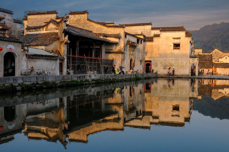 下午赴宏村南湖进行日出的创作。宏村是徽派民居村落中最具代表性的村子,素有“中国画里的乡村”之美誉,奥斯卡最佳外语片 “卧虎藏龙” 曾在此取景拍摄 - 村外的南湖桥。从整个外观上说,宏村是一座奇特的牛形古村落,水圳、南湖、月沼是村中的三处经典景观。在这里你可以静静地创作,可以进入村里的小巷创作或就坐在南湖边上,看垂柳依依,沉入画里。