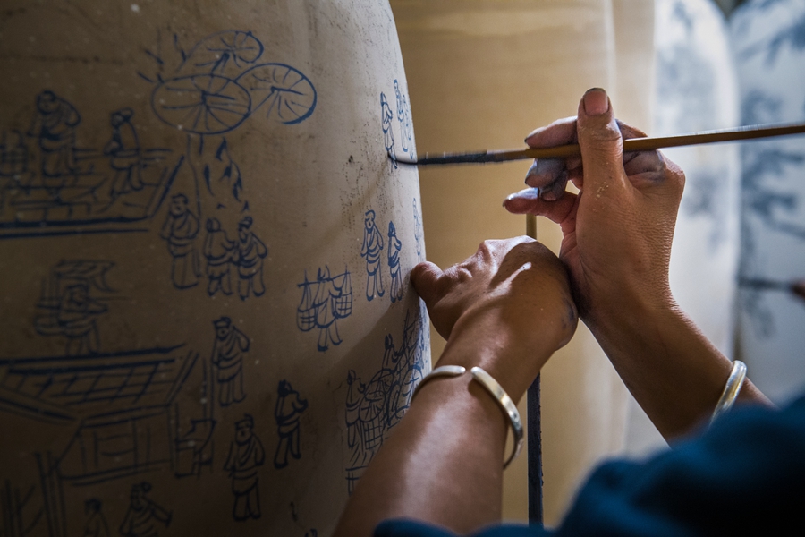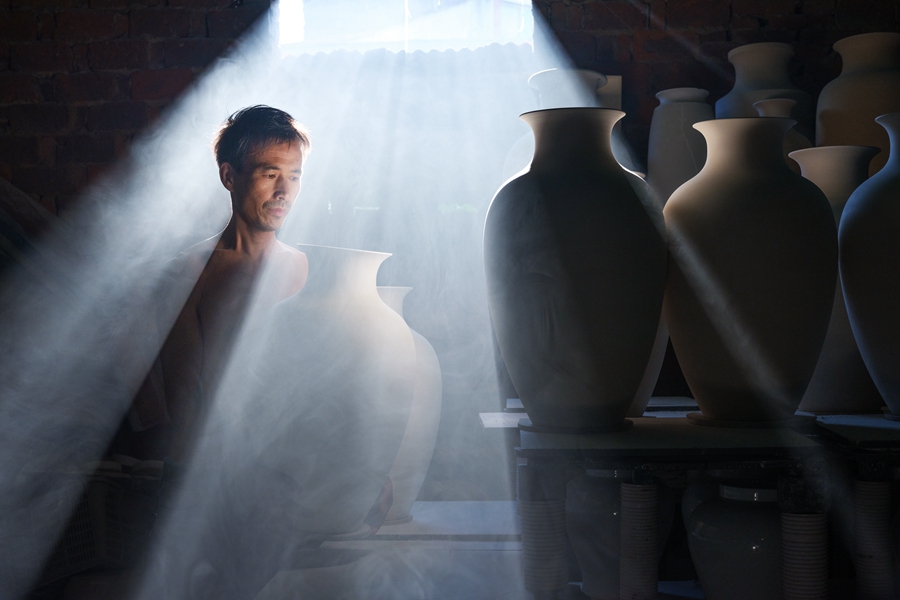 早晨继续赶到特定场景进行创作,拍摄他们描花和绘画的场景,挥笔泼墨千里之外,天青色若等烟雨,渲染在菊花台釉色的幻彩,让人着迷!青花色泽生辉溢彩,韵味渲染飘逸,幽青可爱,图案洁净素雅,装饰雅俗共赏。融色胜似江南水墨山水,古朴典雅,清新流畅,水云萌动之间,尽情的描摹了传世青花瓷的风采,在这里我们既可以拍摄局部和细节,也可以拍摄大的场景。下午或者是晚上,我们会根据他们的生产流程,选择相对应的创作题材和景点。