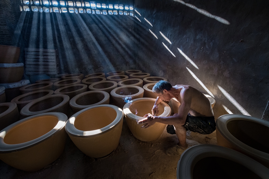 早餐后我们选择一个特定的环境进行创作,拍摄他们传统的制作工艺,利用特定的光线拍摄他们的场景之美,劳动之美,制作在这里我们既可以拍摄大场景,也可以拍摄他们制作的细节。晚上我们在选择特定的生产场景,进行弱光生产场景的拍摄,这也是非常精彩而且难得的摄影题材。因为是弱光拍摄对相机的高感,创作的水平要求比较高。前一天晚上摄影指导老师会在群里交流现场拍摄的技巧,相机的设置,以及相关的创作注意事项。